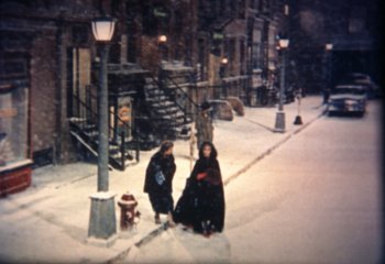 schnee, die strassen manhattens werden mit einer weissen puderschicht